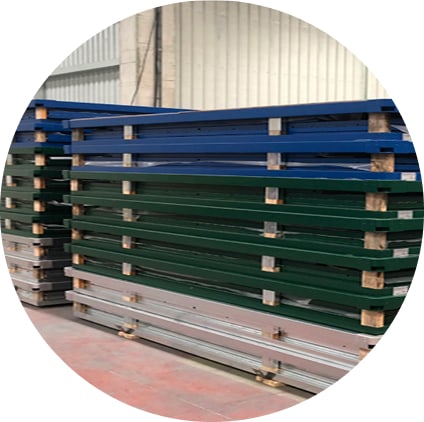 - Stěnové a střešní panely z vlnité galvanizované oceli (0,6 mm)